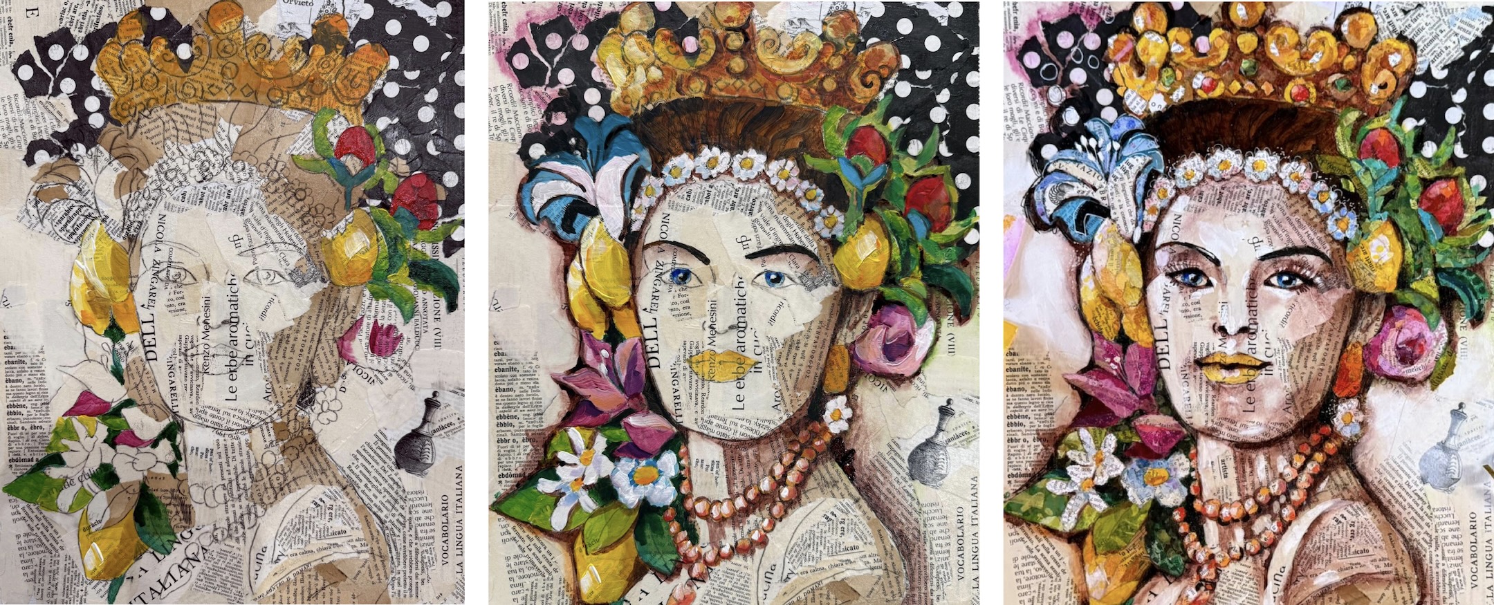 In this workshop, you’ll use hand-painted papers and Italian ephemera to create a collage inspired by the rich artistic traditions of southern Italy. Students will have the choice of focusing on a bold Moor’s Head portrait–richly decorated with fruit, flowers, and ornamental detail–or on a luminous lemon-themed composition.