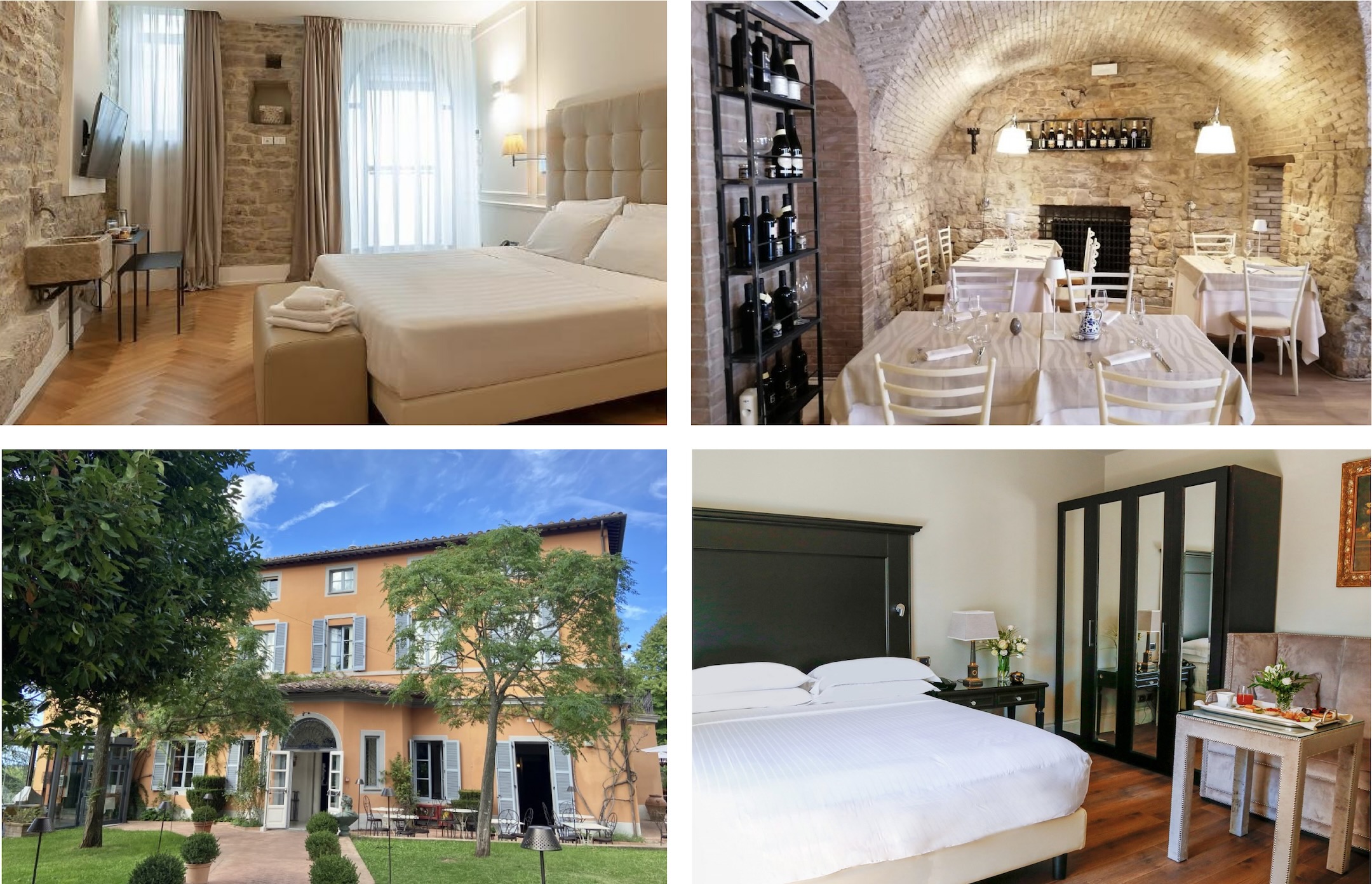 Asisium Boutique Hotel: Located in the heart of Assisi’s historic center, Asisium Boutique Hotel offers an elegant boutique stay within beautifully restored historic buildings that reflect the town’s medieval character. Blending modern comfort with timeless atmosphere, the hotel places guests steps from Assisi’s winding stone streets, sacred landmarks, and quiet piazzas, creating an immersive experience in one of Italy’s most spiritually significant hill towns.
